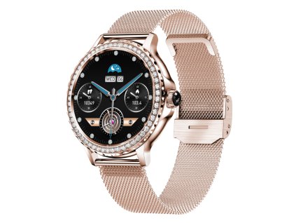Dámské chytré hodinky LUMINA Crystal NX19 Fit s elegantním kovovým ciferníkem lemovaným jemnými kamínky a síťovaným řemínkem z nerezové oceli. hodinky i...