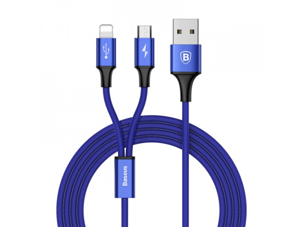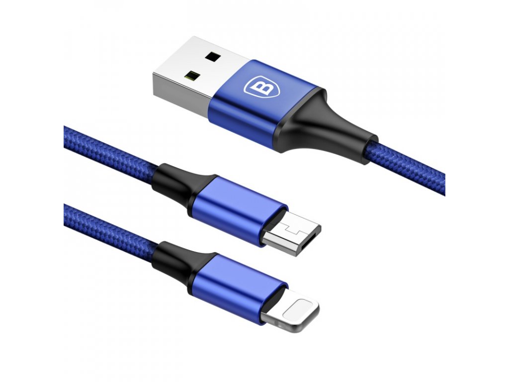 Baseus multifunkční kabel 2in1 Micro + Lightning 3A / délka 1.2M / Blue / CAML-SU13