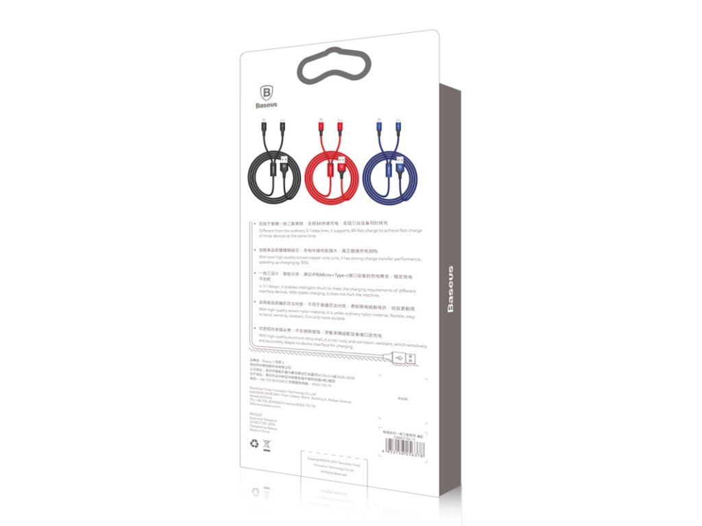 Kvalitní opletený multifunkční datový a nabíjecí kabel s konektorem USB, zakončený hned dvojici konektorů (Lightning a Micro USB). Kabel podporuje přenosovou rychlost až 480Mbps a disponuje výstupním proudem 3A. Kabel lze sepnout páskem na suchý zip. Délka je dostatečná pro pohodlné používání a nylonové opletení zaručí dlouhou životnost. Díky své univerzálnosti je možné najednou propojit širokou škálu mobilních zařízení.