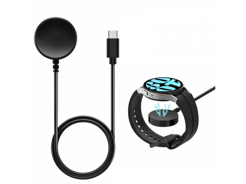 Bezdrátový napájecí kabel určený pro napájení chytrých hodinek Samsung Galaxy Watch 6 / náhradní příslušenství / barva černá / délka kabelu 100cm / konektor USB-A