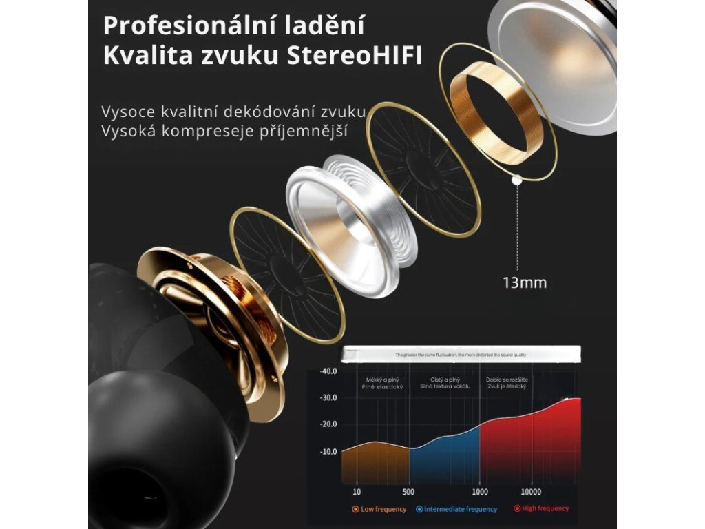 Sluchátka FIRO A9 Pro ANC kladou důraz především na perfektní zvuk a jde jim to opravdu dobře. Svými silnými basy a jemnými výškami ohromí i náročné uživatele. Srdcem každého sluchátek je reproduktor s průměre 13mm a výkonem 40mW. Při výrobě reproduktorů byli použity prémiové materiály jako je titan a grafit, které zajišťují jemný zvuk a dlouhou životnost bez ztráty vlastností sluchátek.