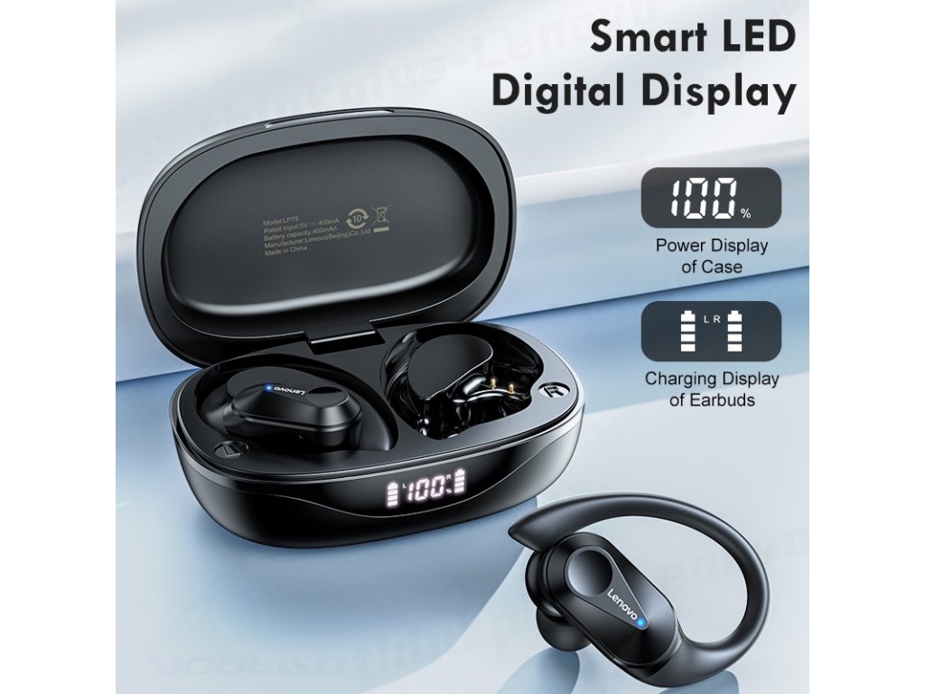 Bezdrátová sluchátka Lenovo LivePods LP75 skvěle drží v uších za všech okolností díky své konstrukci s poutky za uši. Titanové reproduktory produkují krásné čisté výšky a silné basy v HiFi stereo kvalitě.