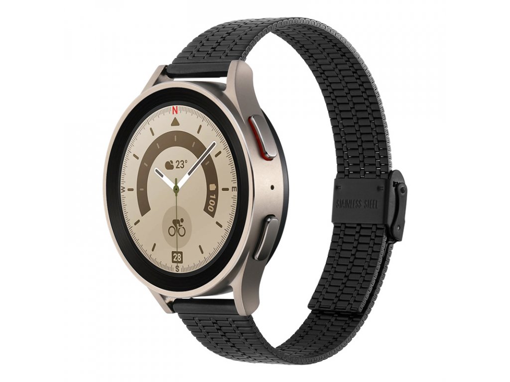 Jemný ocelový řemínek milánský tah v černé barvě určený pro chytré i klasické hodinky. Snadné připnutí a výměna řemínku přes rychloupínací osičky (součástí balení)