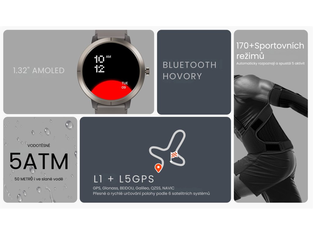 Prémiové materiály a odolnost jsou pro EVOLVE A7 Ultra na prvním místě. Pouzdro hodinek vyrobené vícekanálovým CNC procesem z matné slitiny zinku a hliníku a tvrzený polyuretan na spodní straně zajišťují EVOLVE A7 Ultra unikátní vlastnosti - samotné hodinky mají hmotnost pouze 32g (46g s řemínkem), jsou odolné s certifikací MIL-STD-810h, skvěle se přizpůsobí pokožce a zároveň jsou hypoalergenní. AMOLED displej s vysokým jasem lemuje tenký kovový rámeček a chrání tvrzené Corning Gorilla Glass, odolné proti drobným oděrkám i hlubokým rýhám. Hodinky jsou vodotěsné do 50 metrů hloubky (5ATM) ve sladké i slané vodě.