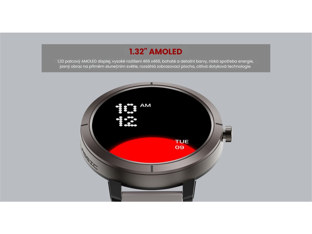 Pod stylovým vzhledem EVOLVE A7 Ultra se skrývá to pravé pro aktivní životní styl, sport i kontrolu zdraví. Hodinky mají profesionální PPG senzor VC30F-S, se kterým měří tepovou frekvenci, okysličení krve i kvality spánku. Kromě toho umí analyzovat aktuální stresovou zátěž, vyhodnotit emoční náladu a změřit každý Vás krok, vzdálenost i spálenou kalorii - přesně, detailně a přehledně.