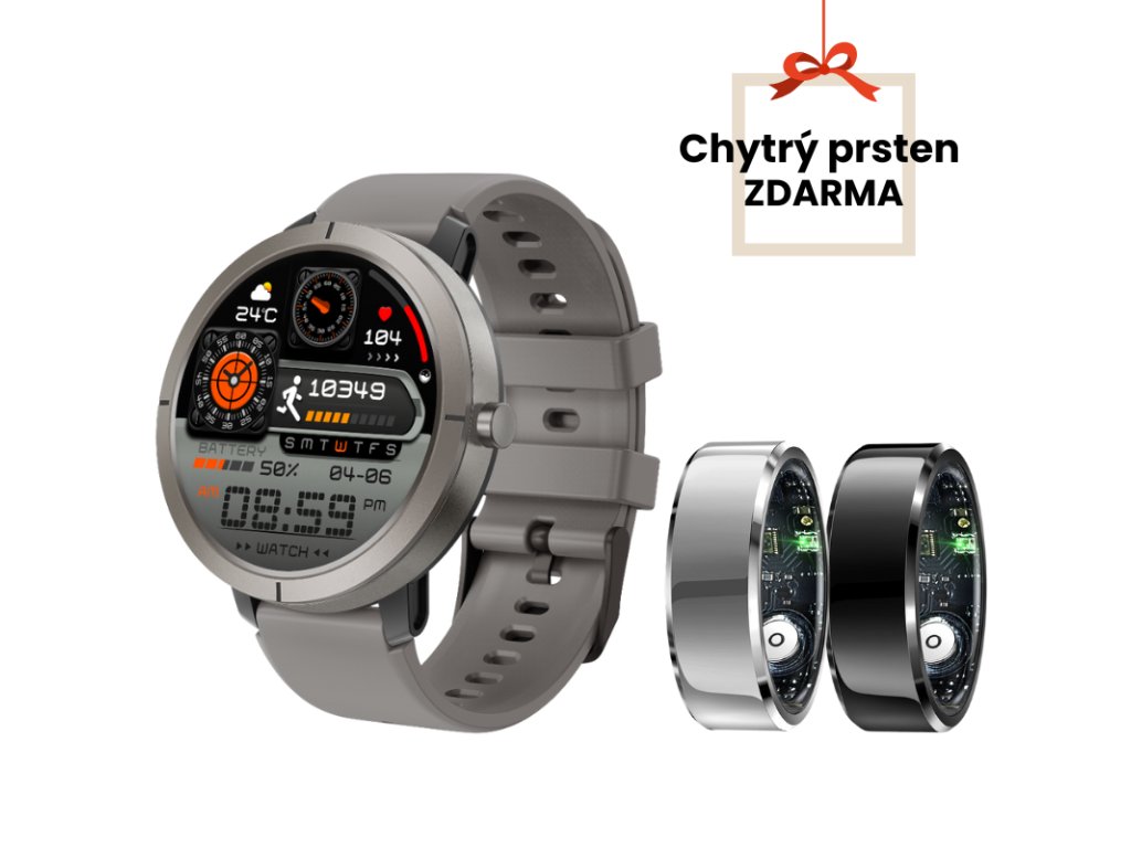 Limitovaná vánoční akce: k chytrým hodinkám EVOLVE A7 Ultra vám přibalíme chytrý prsten MOVE X6 Ultra jako DÁREK ZDARMA. Vyberte si své vodotěsné chytré hodinky s GPS a vláním spolu s elegantním doplňkem, který umí víc, než čekáte.