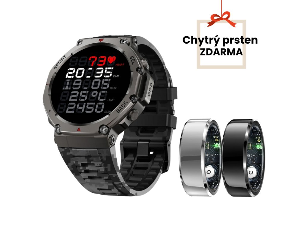 Limitovaná vánoční akce: k chytrým hodinkám EVOLVE X10 Ultra vám přibalíme chytrý prsten MOVE X6 Ultra jako DÁREK ZDARMA. Vyberte si své vodotěsné chytré hodinky s GPS a vláním spolu s elegantním doplňkem, který umí víc, než čekáte.