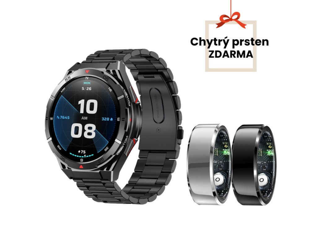 Limitovaná vánoční akce: k chytrým hodinkám EVOLVE X2 Ultra vám přibalíme chytrý prsten MOVE X6 Ultra jako DÁREK ZDARMA. Vyberte si své vodotěsné chytré hodinky s GPS a vláním spolu s elegantním doplňkem, který umí víc, než čekáte.