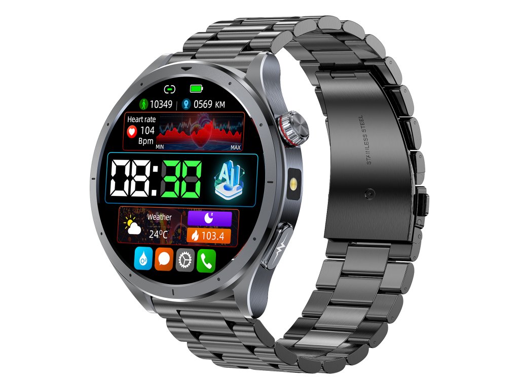 Chytré hodinky Lige HEATLH ET472 Fit s množstvím funkcí pro detailní analýzu pohybu i zdraví. Neinvazivní měření hladiny cukru v krvi, srdečního tepu, HRV, krevního tlaku, EKG, složek krve, složení těla, tělesné teploty, stresu, rychlosti metabolizmu, okysličení krve a kvality spánku.
