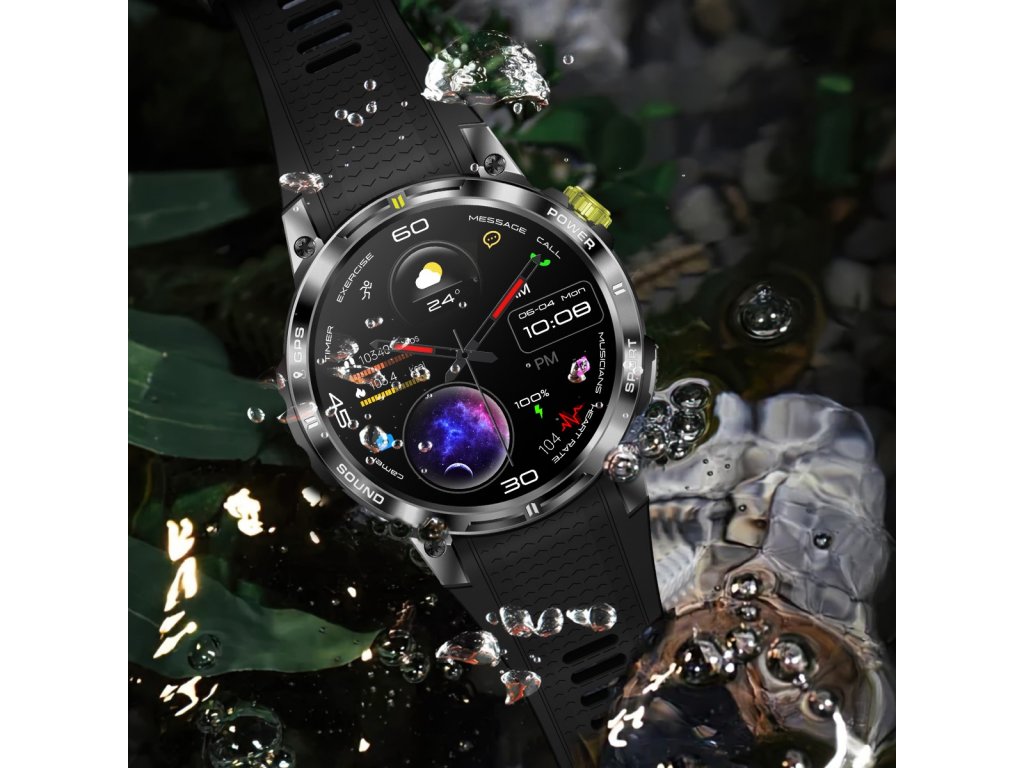 Chytré hodinky Lige NX18 Ultra GPS s ohromujícím 1,51" širokým AMOLED displejem a integrovanou GPS. Lehké a odolné hodinky s leštěným kovovým rámečkem kolem displeje.