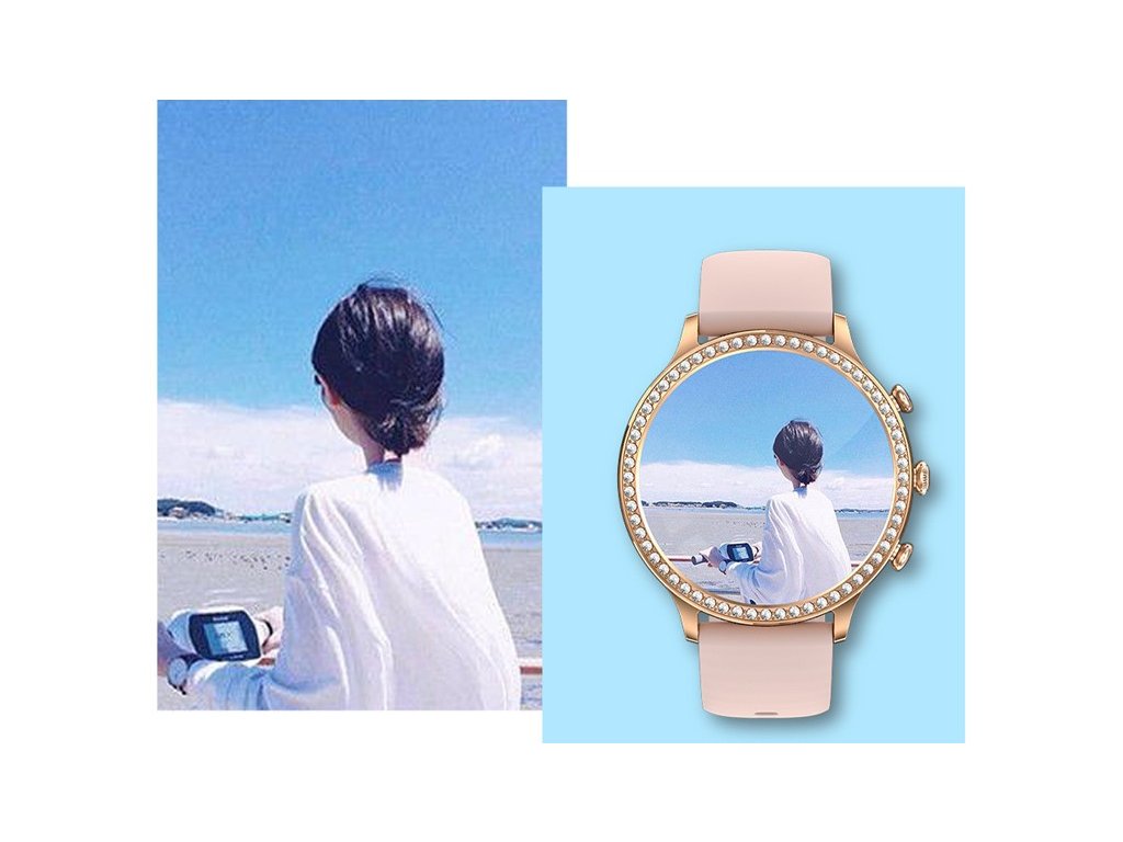 Hodinky si nastavíte přesně podle svého vkusu, nálady a situace. Na úvodní obrazovku si můžete vybrat z více než 500 motivů ciferníků nebo nahrát vlastní fotografii. Silikonový řemínek je vyjímatelný a lze jej kdykoliv vyměnit za řemínek z jiného materiál nebo v jiné barvě.