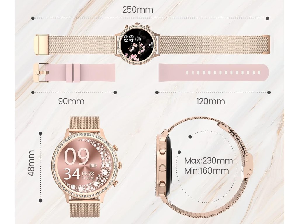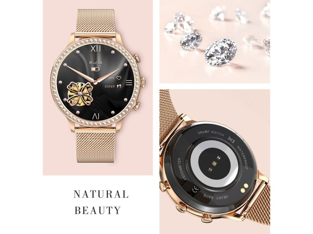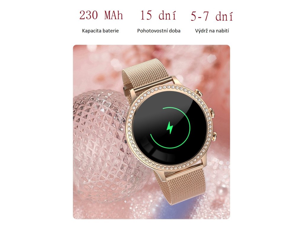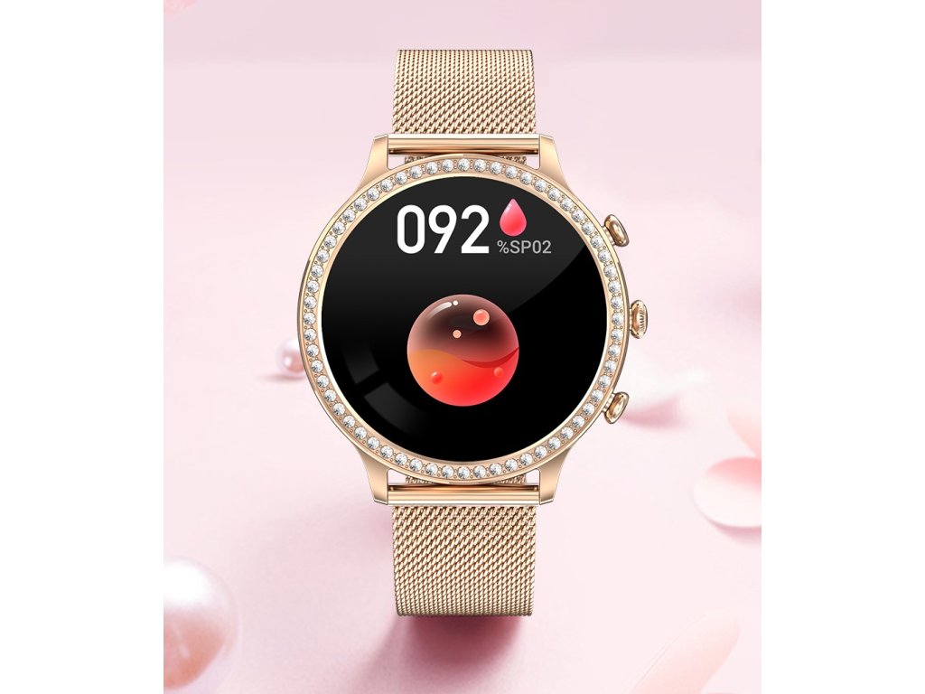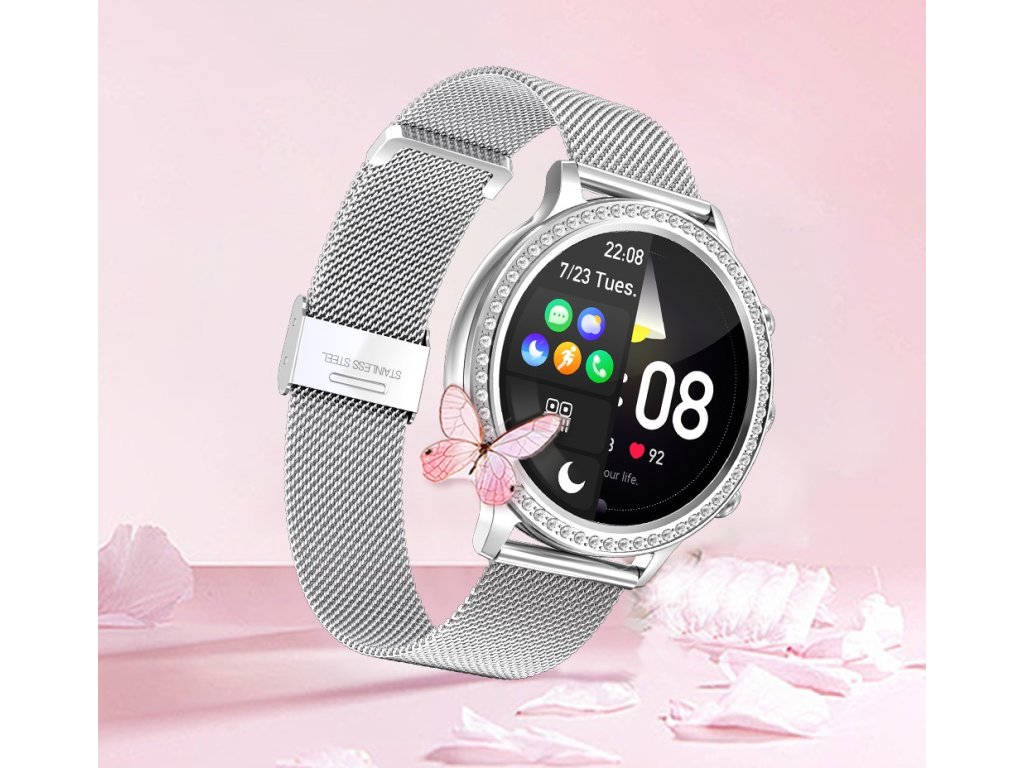 Dámské chytré hodinky LUMINA Femi I70 Fit ztělesňují styl a eleganci. Prémiové zpracování je podtrženo kovovým ciferníkem zdobeným 60 zářivými krystaly a osazeným zářivým AMOLED displejem.