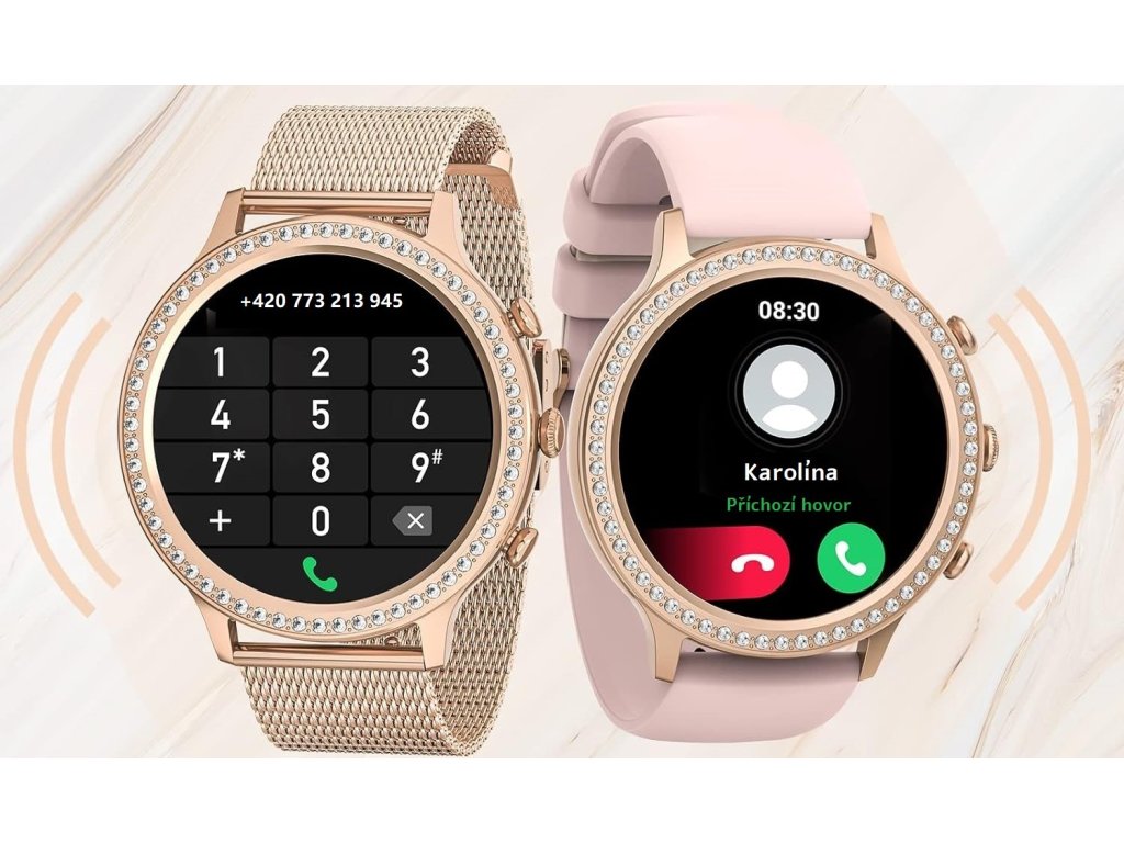Hodinky mají vlastní mikrofon s reproduktorem. Telefonní hovory tak můžete přijímat a vyřizovat přímo ze zápěstí, aniž byste vzali telefon do ruky. Hodinky stačí pouze spárovat s Bluetooth Vašeho mobilního telefonu. Funkci lze využít také jako Handsfree například při jízdě v autě.