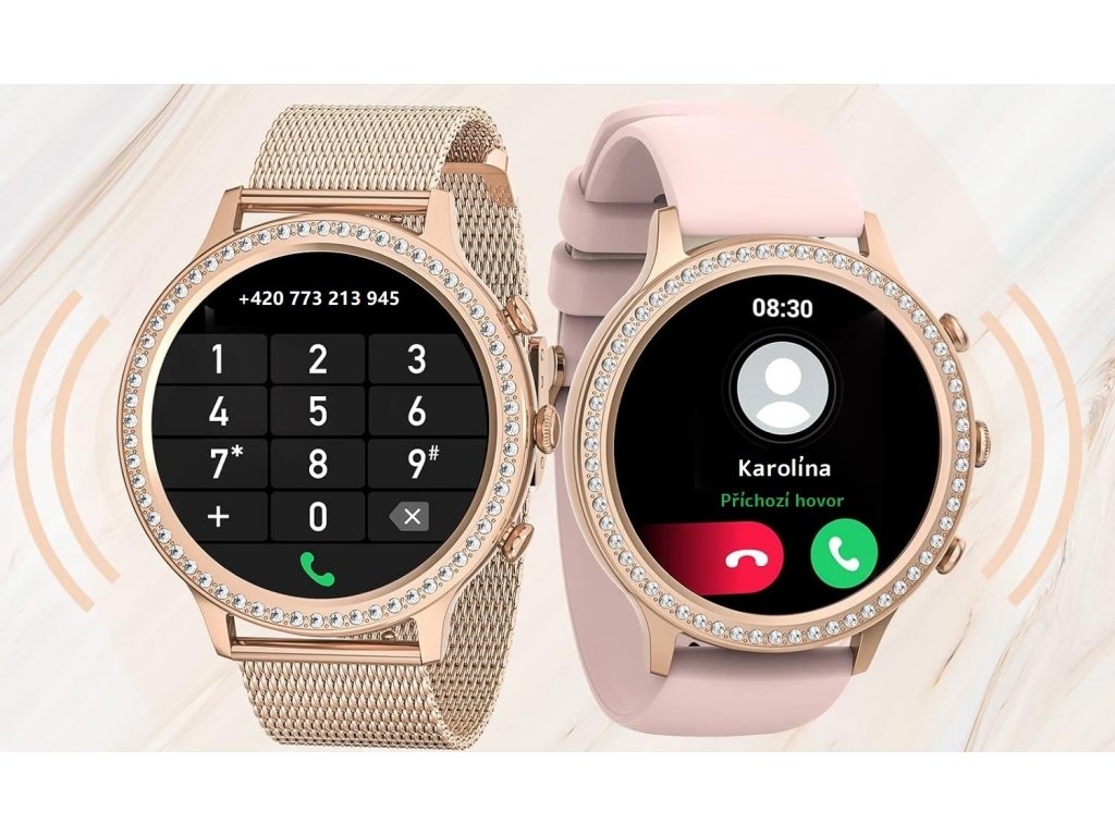Hodinky mají vlastní mikrofon s reproduktorem. Telefonní hovory tak můžete přijímat a vyřizovat přímo ze zápěstí, aniž byste vzali telefon do ruky. Hodinky stačí pouze spárovat s bluetooth Vašeho mobilního telefonu. Funkci lze využít také jako Handsfree například při jízdě v autě.