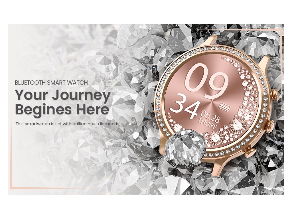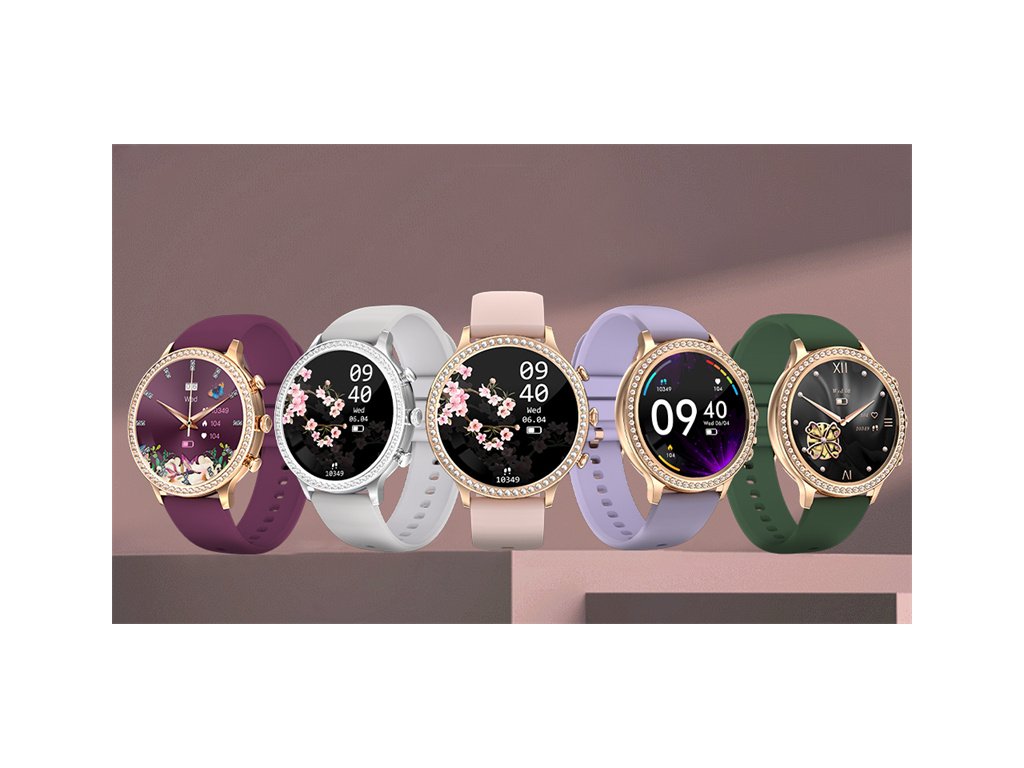 Dámské chytré hodinky LUMINA Femi I70 Fit ztělesňují styl a eleganci. Prémiové zpracování je podtrženo kovovým ciferníkem zdobeným 60 zářivými krystaly a osazeným zářivým AMOLED displejem.
