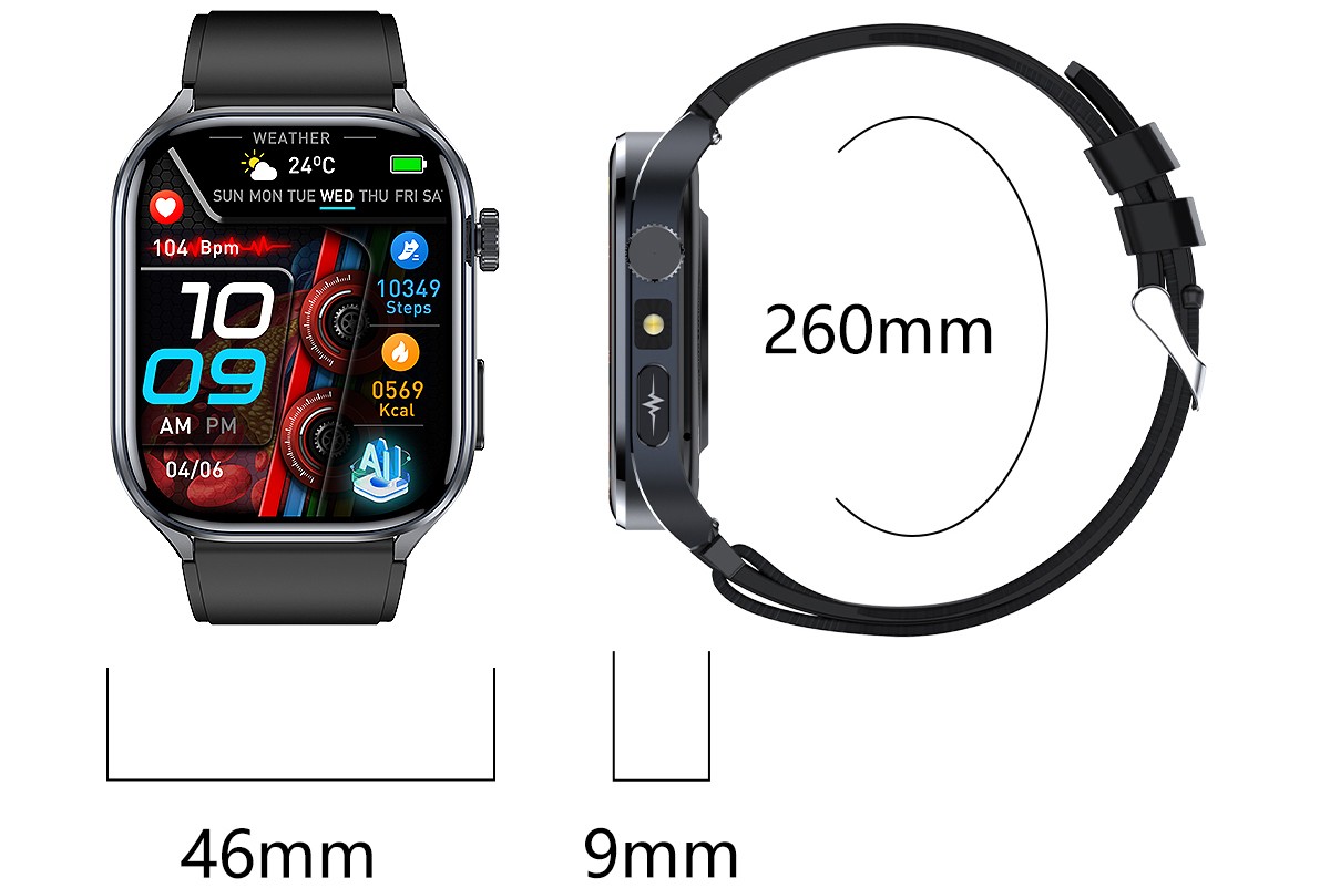 PulsGo HEALTH ET572 Fit / EKG / Krevní tlak / Cukr v krvi / Složky krve / Teplota / Hovory / AI asistent