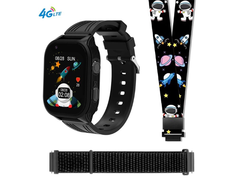 4G LTE dětské volací hodinky s GPS PulsGo KIDS Cool D8 se dvěma řemínky a šňůrkou pro pohodlné zavěšení na krk. Lehké a odolné pouzdro stvořené s ohledem na velikost zápěstí dětí ve věku 5-12 let.
