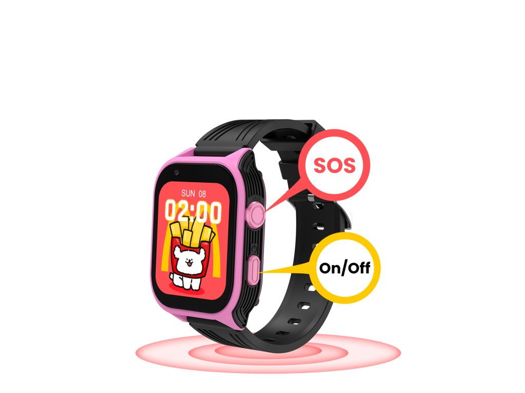 Aby se děti cítili stále v bezpečí, mají chytré hodinky SOS tlačítko. V případě nenadálé události nebo nebezpečné situace stačí dlouze zmáčknout tlačítko. Hodinky automaticky zahájí vytáčení a volání až na 3 přednastavená telefonní čísla.