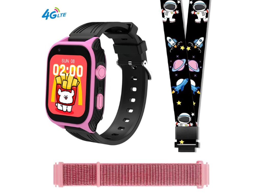 4G LTE dětské volací chytré hodinky s GPS PulsGo KIDS Cool D8 na SIM kartu se dvěma řemínky a šňůrkou pro pohodlné zavěšení na krk. Tenké, lehké a odolné pouzdro navržené na velikost zápěstí dětí ve věku 5-12 let.