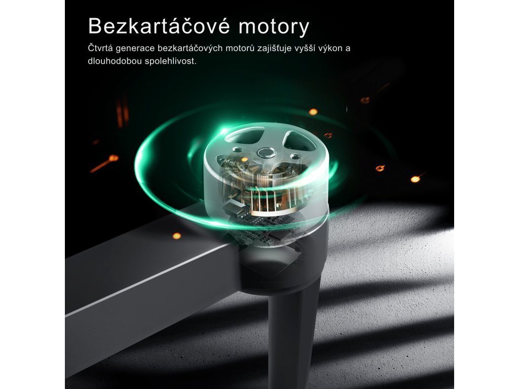 Bezkartáčovými motory s výkonem 25W mají dostatečný výkon pro plynulý let a optimální letové vlastnosti. Nová generace motorů typ 1503 má nízkou spotřebu energie až o 90% vyšší spolehlivost. Létání si díky tomu užijete i ve větru a ve zhoršených podmínkách. Dron Visu L159 je připravený také na lety po noční obloze. Systém modrého LED osvětlení na rotorech a trupu dělá dron nepřehlédnutelný. Bez ohledu na denní dobu budete mít nad létáním nepřetržitou kontrolu.