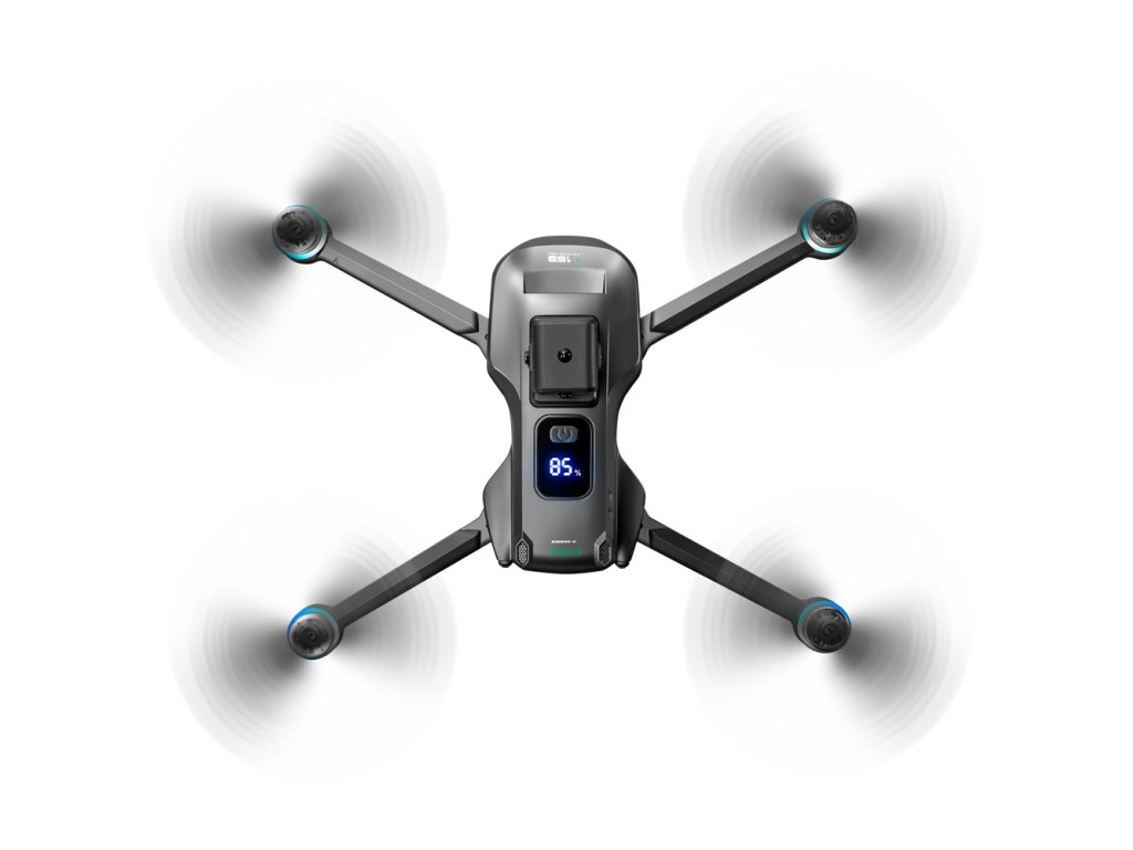 Dron má dvě kamery mezi kterými můžete během letu přepínat a zachytit tak každý okamžik z těch nejlepších úhlů. Přední kamera snímá Full HD video a 4K fotografie se širokoúhlým záběrem 120°. Videa i fotografie budou vždy ostrá a plynulá i v náročných podmínkách díky EIS elektronické stabilizaci obrazu. Pro ještě lepší výsledek záznamu využívá dron čip s AI, která pořízené video po uložení upraví. Ideální úhel záběru nastavíte během letu přímo na dálkovém ovladači. S kamerou můžete plynule pohybovat v rozsahu 0-90°. Doplňkové spodní kameře neuniknou žádné záběry z míst, která by jinak zůstala skrytá.