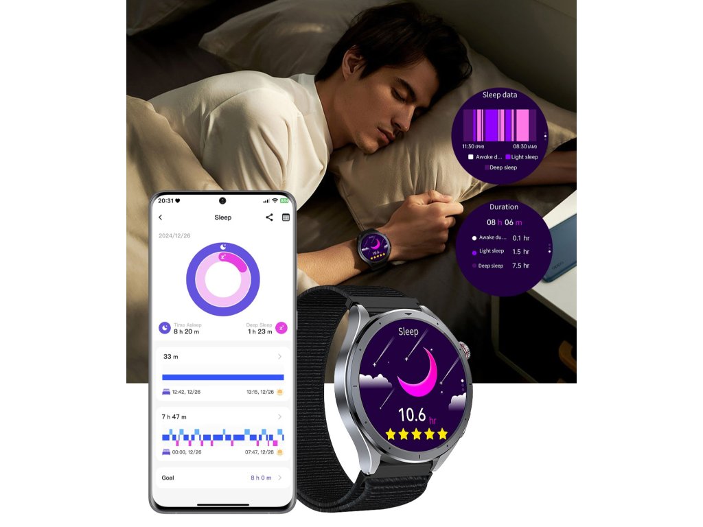 Zlepšete kvalitu svého spánku díky chytrým hodinkám Lige HEALTH ET472 a pečujte o své celkové zdraví. Špatný spánek může být způsoben mnoha faktory, jako je stres, nezdravá strava, působení bezdrátových sítí nebo modré světlo z displejů, což může vést ke snížení výkonnosti, špatné náladě nebo náhlé únavě.