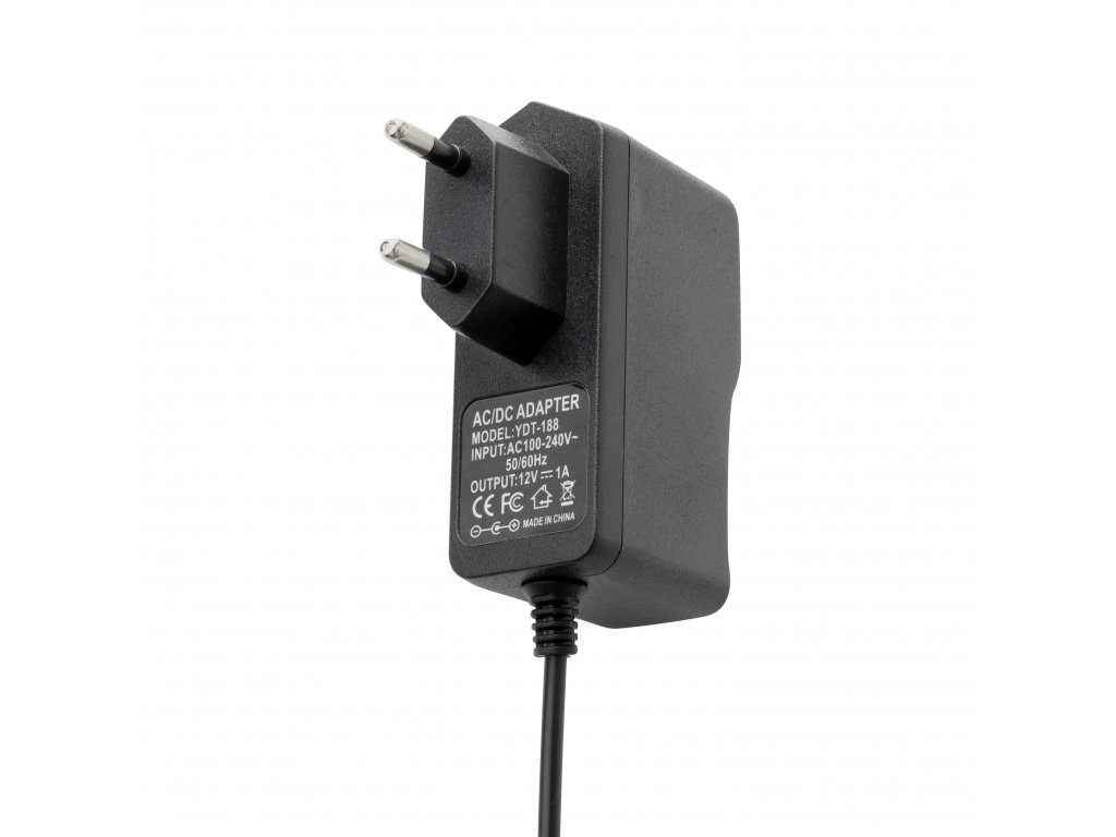 Napájecí adaptér s konektorem jack 5,5 x 2,1mm. Vstupní proud 100-240V, 50/60Hz - výstup 12V / 1A