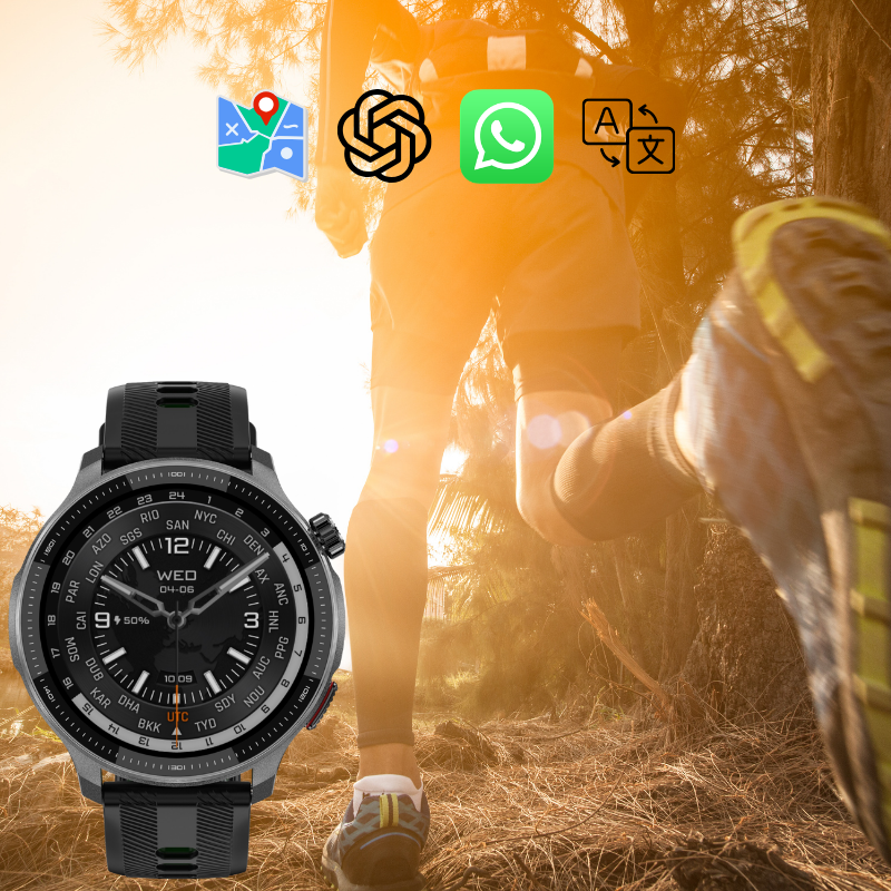 Hodinky mají funkce, které vám usnadní i zpříjemní každý den - nechybí budík, kalkulačka, kalendář, stopky, nebo odpočet času. Pro milovníky horské turistiky a outdoorových aktivit mají kompas, barometr, měření nadmořské výšky a předpověď počasí. Kromě toho můžete využít také nadstandardní funkce, jako hlasový záznamník, měření hladiny hluku, výkonnou svítilnu, nebo hlasový asistent. EVOLVE G6 Ultra umožňují stažení externích aplikací jako jsou Google mapy, Chat GPT, WhatsApp nebo Google translator. A pokud máte dlouhou chvíli, můžete ji vyplnit nabídkou her - chytré hodinky EVOLVE G6 Ultra vás zkrátka podrží i pobaví zároveň.