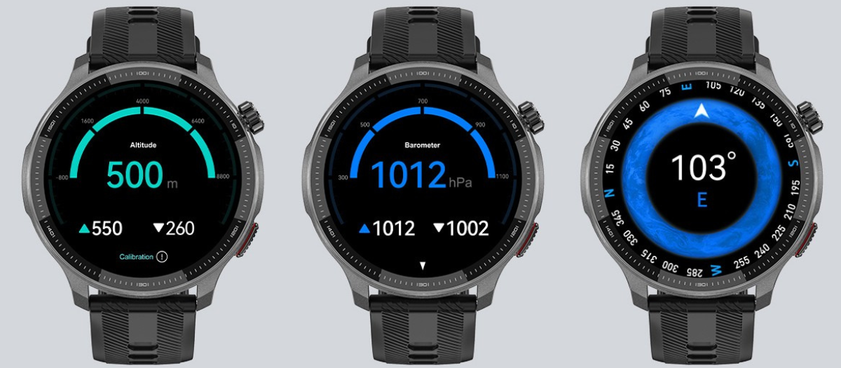 Ať už se chystáte zdolávat vrcholky hor, toulat se volnou přírodou nebo kempovat ve stanu, hodinky EVOLVE G6 Ultra mají výbavu, která vám cestu usnadní i zpříjemní. Mezi funkcemi nechybí kompas, barometr, měření nadmořské výšky a předpověď počasí. Hodnoty si můžete průběžně kontrolovat v hodinkách a nadmořskou výšku i průběh jejího vývoje hodinky navíc automaticky zaznamenávají u všech venkovních sportovních režimů.