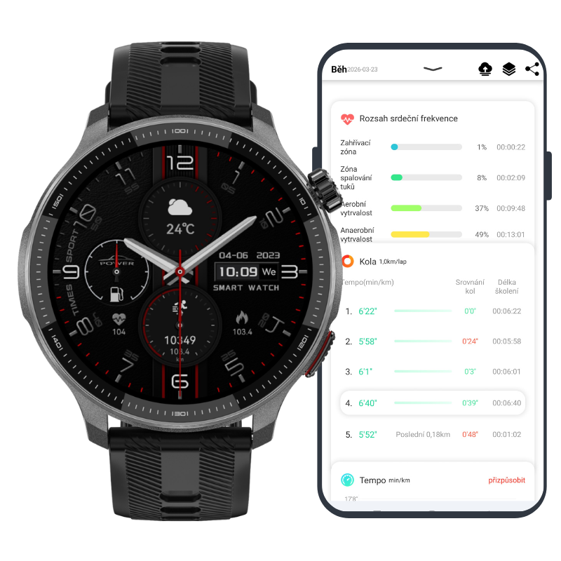 Pro pohodlné ovládání si na hodinkách přizpůsobit všechno přesně podle sebe, včetně vyměnitelného řemínku, stovek motivů klasických ciferníků i animací na úvodním displeji, možnosti nahrát vlastní fotografii, upravit styl zobrazení menu nebo nastavit AOD s nepřetržitým zobrazením času na vypnutém displeji. Uživatelsky příjemné jsou také zkratky pro automatického rozsvícení displeje dvojitým poklepáním nebo otočením zápěstí. Zhasnout displej můžete položením dlaně a rozsvítit svítilnu dlouhým stisknutím bočního ovládacího kolečka. Pro větší bezpečí je možné nastavit PIN kód k otevření hodinek. Hodinky i mobilní aplikace WearPro jsou kompletně v Českém jazyce a lze je spárovat se všemi telefony, které mají operační systém Android nebo IOS.