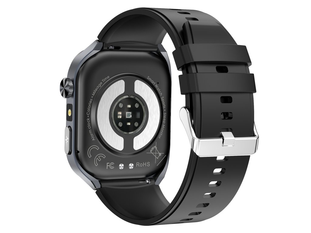 Na těle hodinek jsou optické snímače pro měření a monitoring tělesného zdraví: EKG elektroda 500HZ- Goodix 3228T, PPG čip PD2325 + GH3228T, G-senzor DA267.
