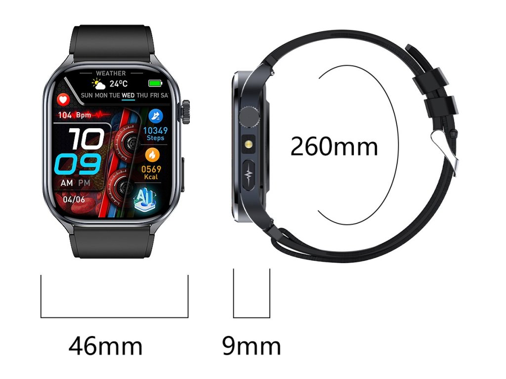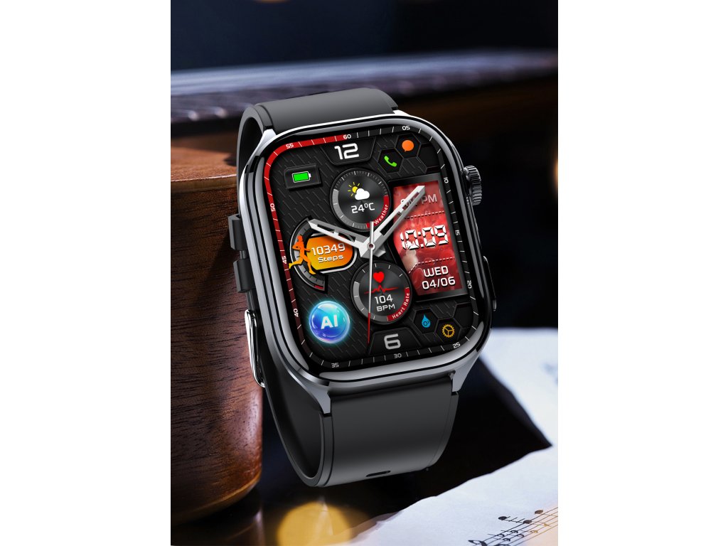 PulsGo HEALTH ET572 Fit / EKG / Krevní tlak / Cukr v krvi / Složky krve / Teplota / Hovory / AI asistent