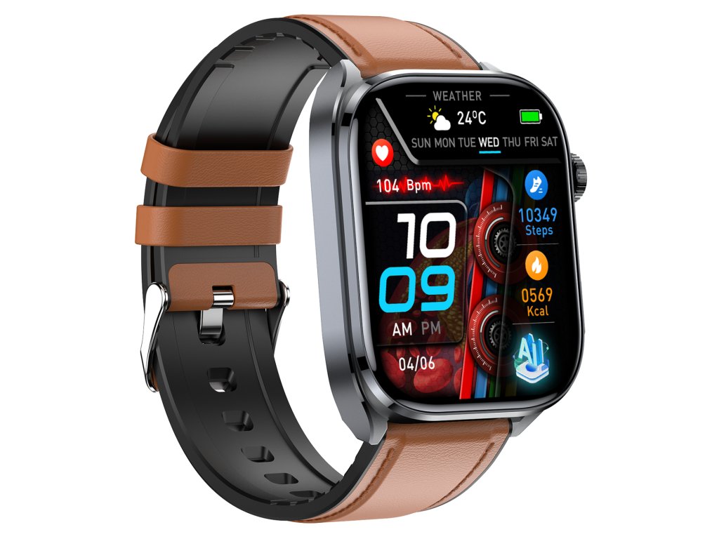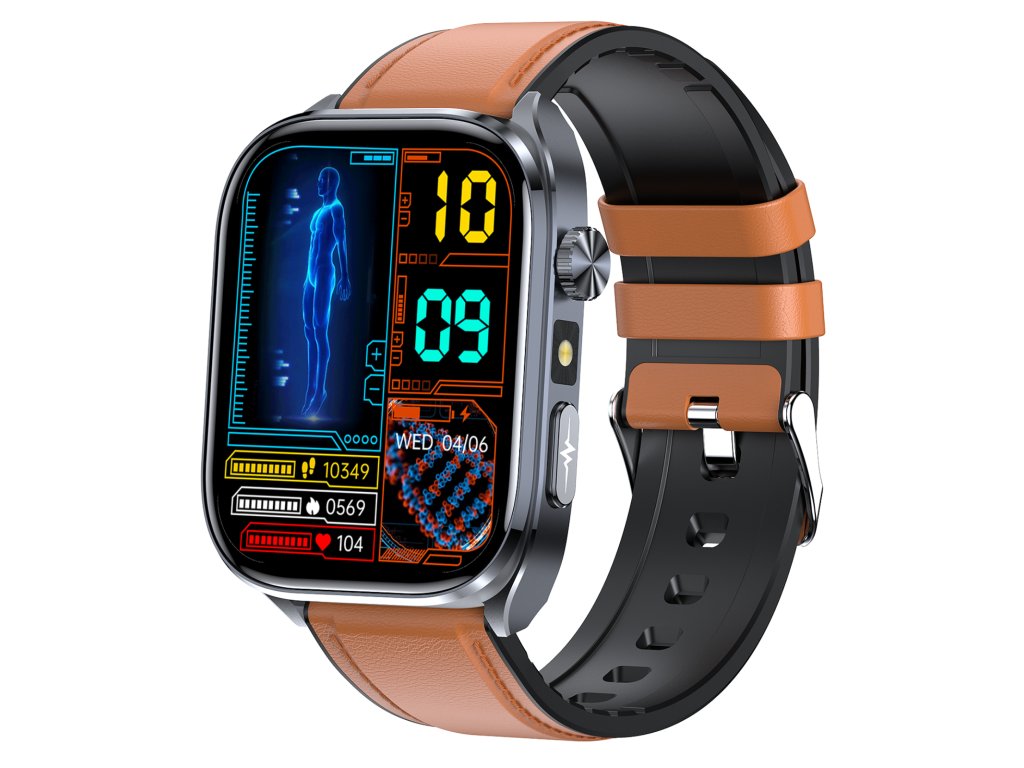 Chytré hodinky PulsGo HEATLH ET572 Fit s funkcemi pro detailní měření a analýzu pohybu i zdraví. Neinvazivní měření hladiny cukru v krvi, srdečního tepu, HRV, krevního tlaku, EKG, složek krve, složení těla, tělesné teploty, stresu, rychlosti metabolizmu, okysličení krve a kvality spánku.