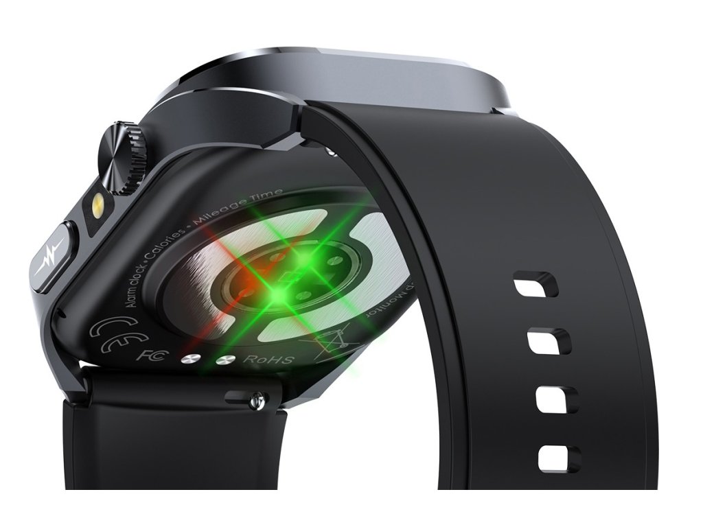 Na těle hodinek jsou optické snímače pro měření a monitoring tělesného zdraví: EKG elektroda 500HZ- Goodix 3228T, PPG čip PD2325 + GH3228T, G-senzor DA267.