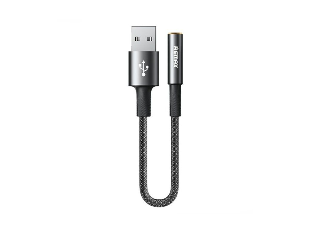 REMAX audio adaprér - redukce z konektoru USB-A na port Jack 3,5 mm /délka kabelu 12 cm / barva černá / průměr kabelu 3,8mm
