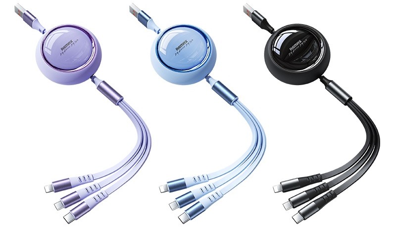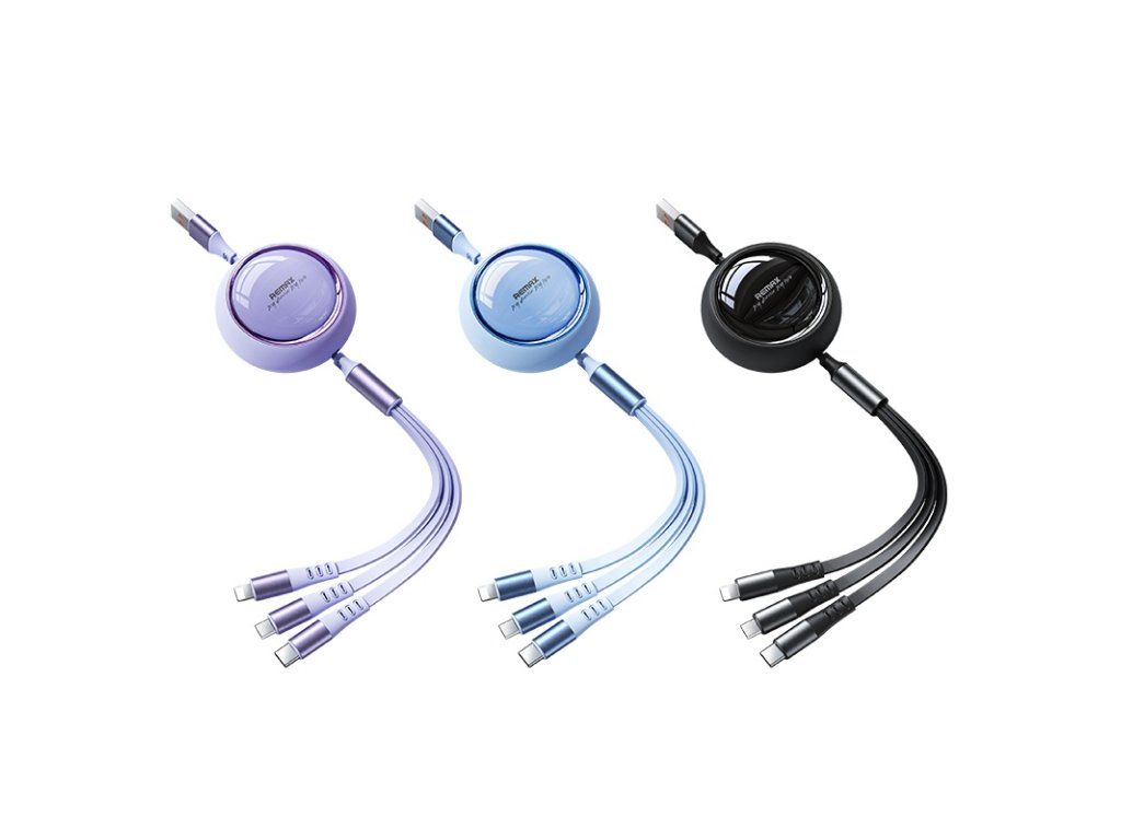 REMAX kabel nabízí 3 výstupní konektory v jednom těle a především praktický navíjecí mechanismus, který vám umožní vytáhnout přesně takovou délku kabelu, jakou právě potřebujete – až do maximální délky 120 cm. Už žádné zamotané kabely v batohu nebo na stole. Díky plochému TPE provedení je kabel odolný, flexibilní a snadno se používá. Bez problémů zvládne nabíjet až 3 zařízení současně.