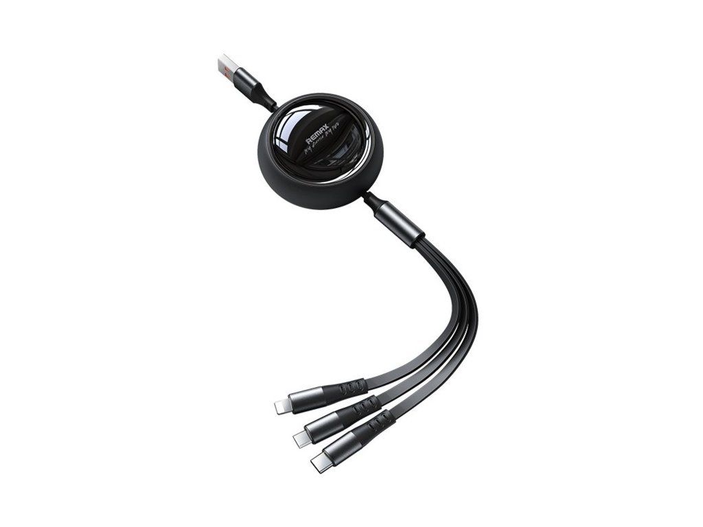 REMAX multifunkční kabel 3v1 / micro USB / USB-C / Lightning 15W / 3A 1,2m (černý)