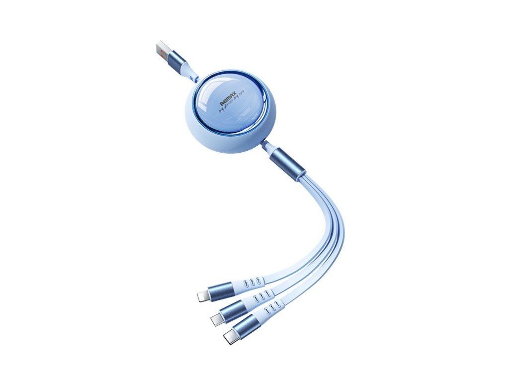 REMAX multifunkční kabel 3v1 / micro USB / USB-C / Lightning 15W / 3A 1,2m (modrý)
