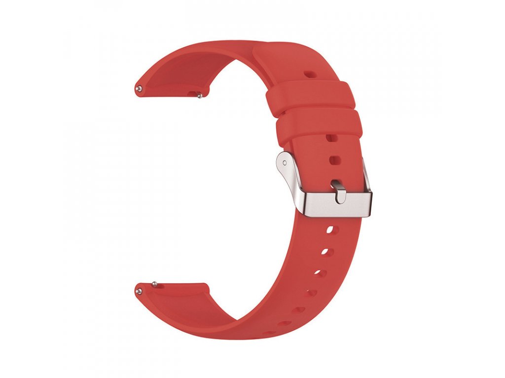 Červený silikonový řemínek určený nejen pro chytré hodinky / materiál hypoalergenní silikon / ocelová přezka / šířka 22mm / nastavitelná délka na obvod zápěstí v rozmezí 13 až 21,5cm / odolný měkký materiál, který zaručuje pohodlí a komfort pro celodenní nošení / kompatibilní se všemi chytrými hodinkami, které mají šířku řemínku 22mm