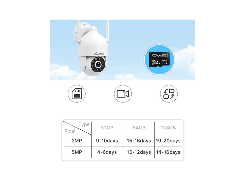 Kamerový systém ANRAN P2-DW858 podporuje automatické nahrávání a ukládání záznamu na pevný HDD disk 2,5" s kapacitou až 4TB (není součástí systému). Nahrávání záznamu probíhá ve smyčce. Po zaplnění kapacity disku se záznam automaticky přehrává od nejstaršího pořízeného.